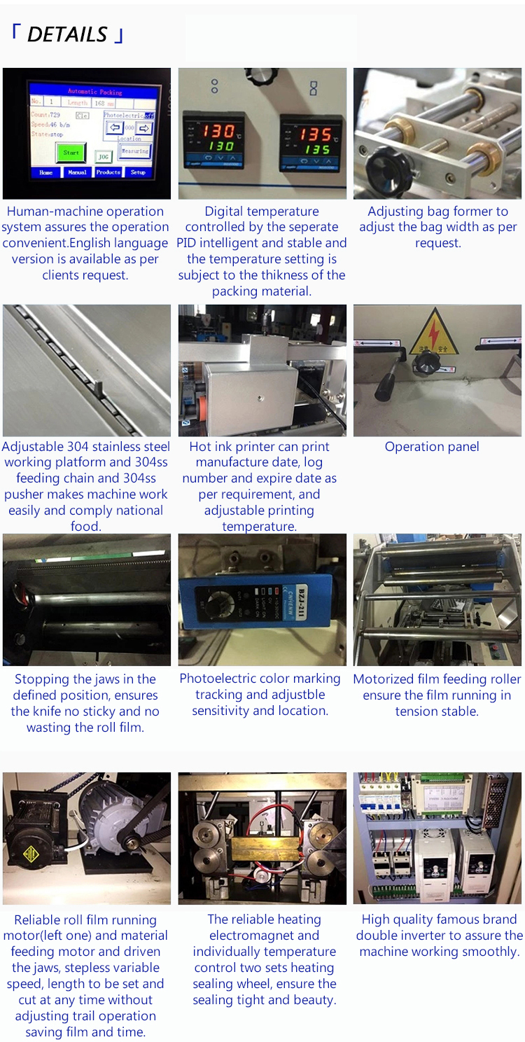 উচ্চ স্বয়ংক্রিয়তাঃ স্বয়ংক্রিয় খাওয়ানো, ব্যাগ তৈরি, ভরাট, সিলিং, কাটা এবং আউটপুট সমস্ত সম্পন্ন হয়, যা এটিকে বড় আকারের উত্পাদনের জন্য উপযুক্ত করে তোলে।