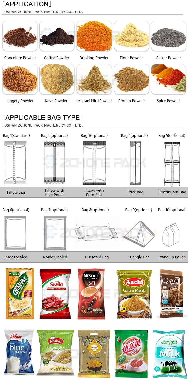এটি সাধারণত পাউডার এবং দানাদার উপকরণ প্যাকেজিংয়ের জন্য ব্যবহৃত হয়, মিল্ক পাউডার এর সবচেয়ে সাধারণ এবং প্রাথমিক অ্যাপ্লিকেশনগুলির মধ্যে একটি।